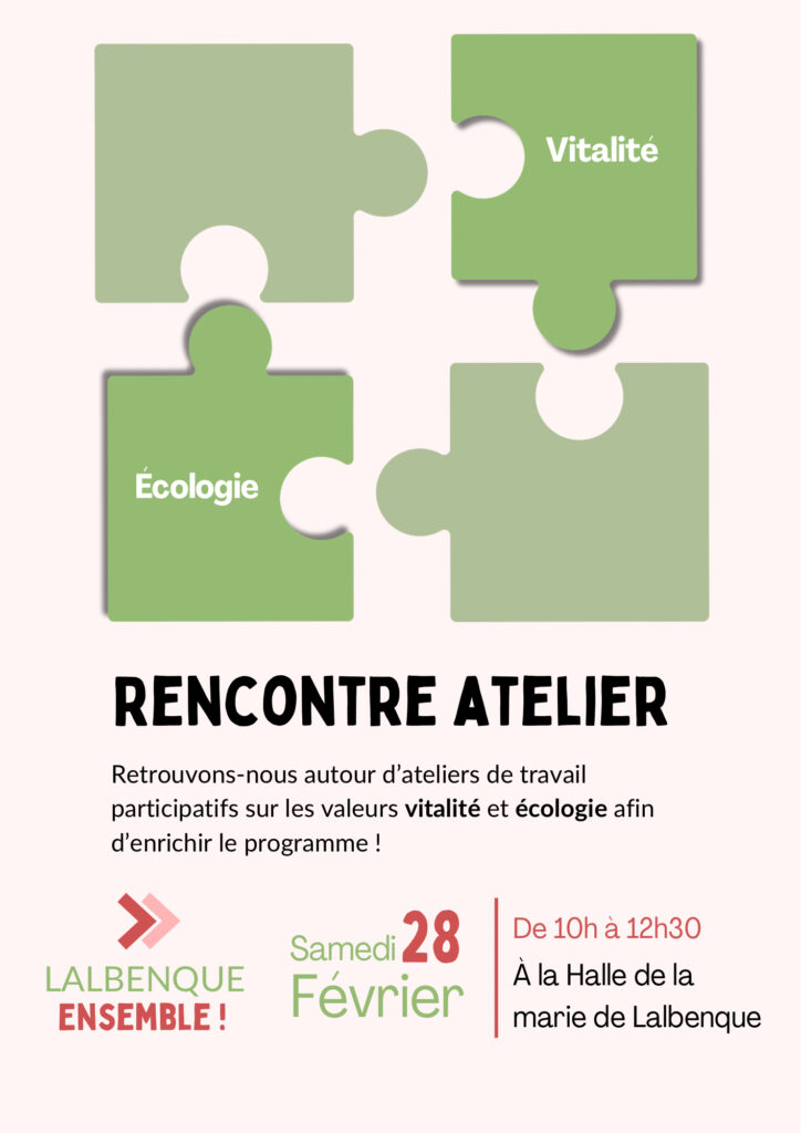 Nous vous proposons une rencontre atelier autour des valeurs vitalité et écologie samedi 28 février de 10h à 12h30 à la Halle de la mairie de Lalbenque.